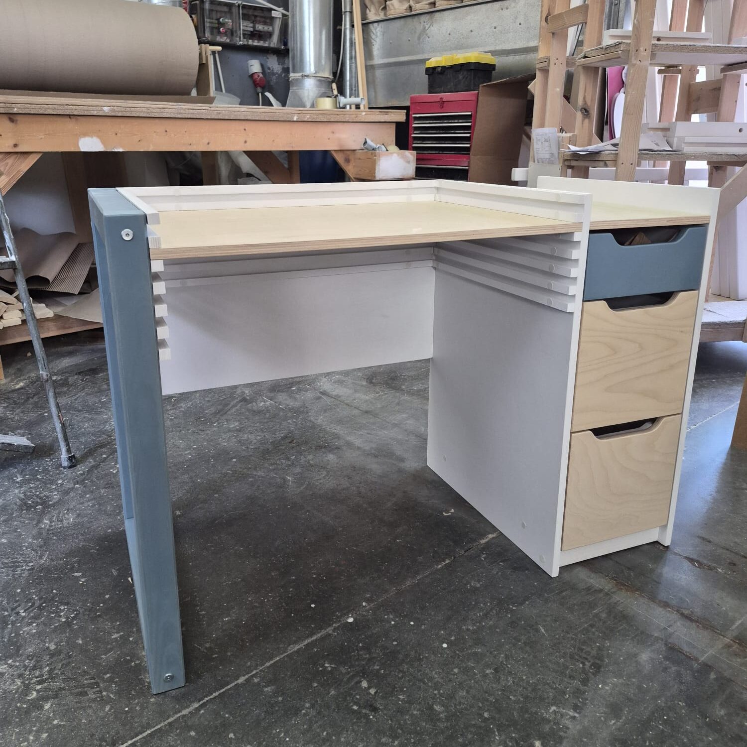 Biurko podczas prac montażowych
