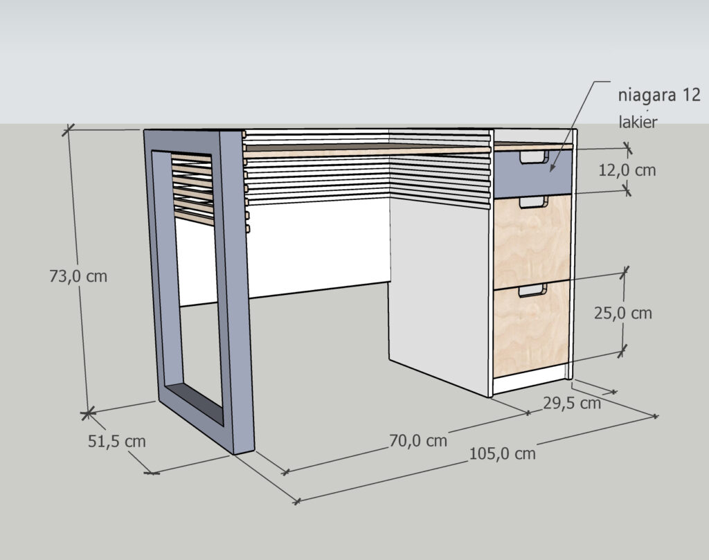 Rysunek konstrukcyjny biurka z regulowanym blatem