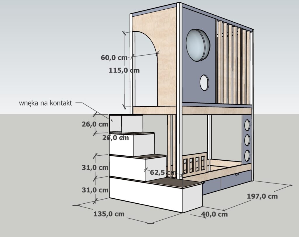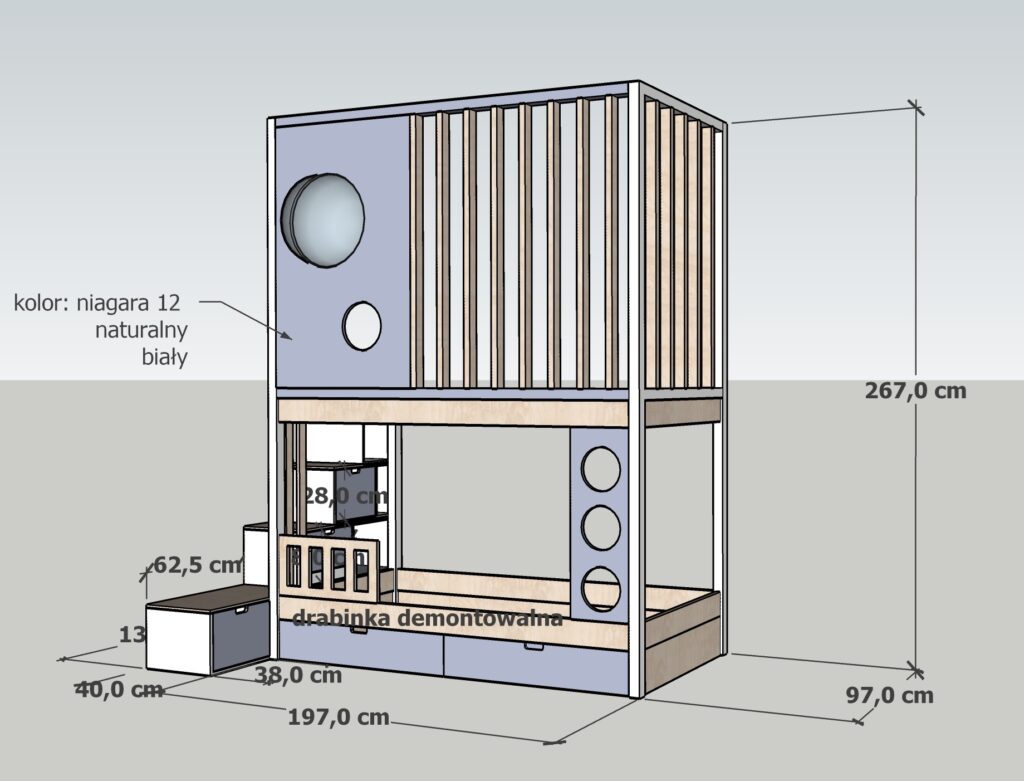 Projekt konstrukcyjny łóżka z antresolą na górze