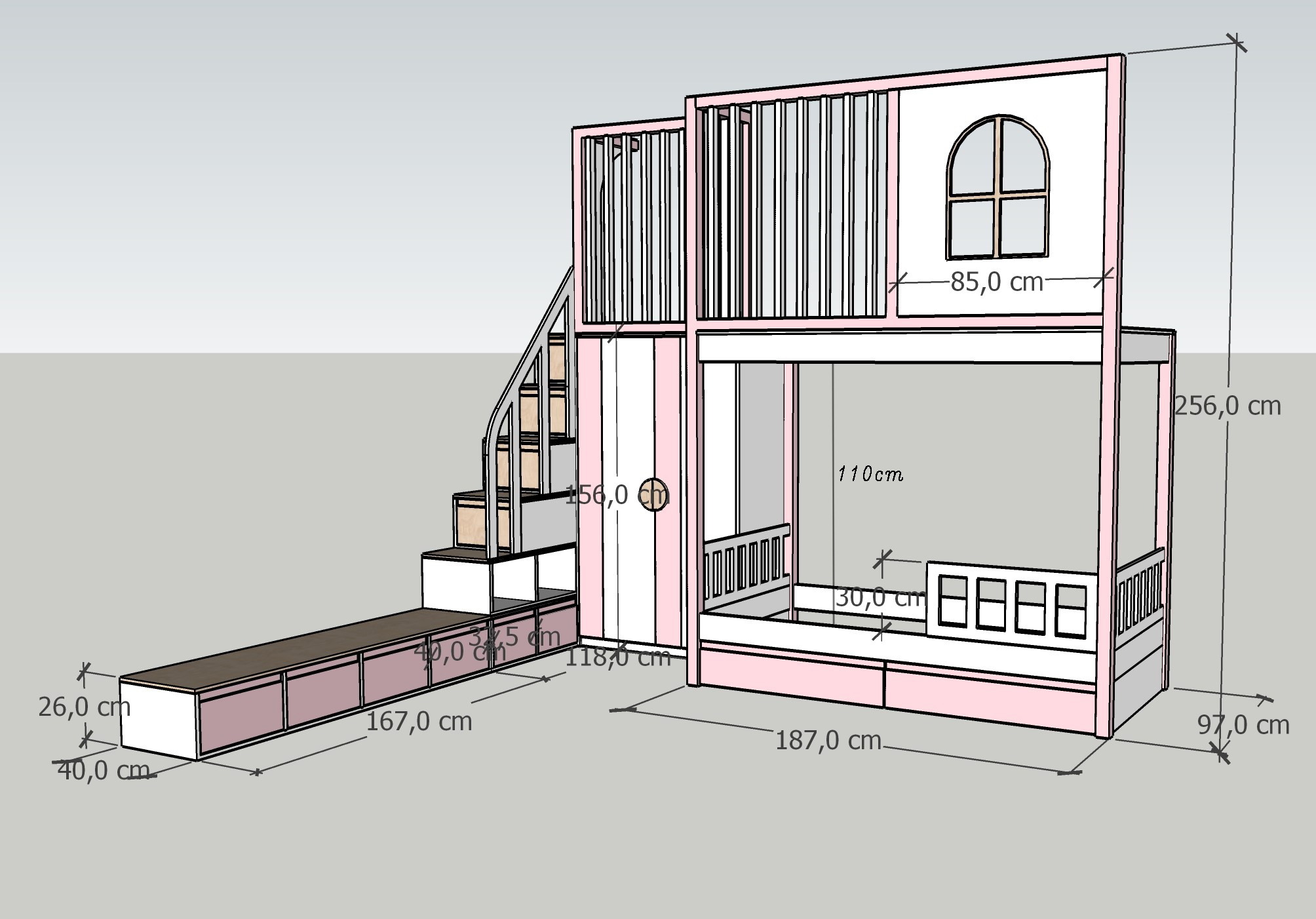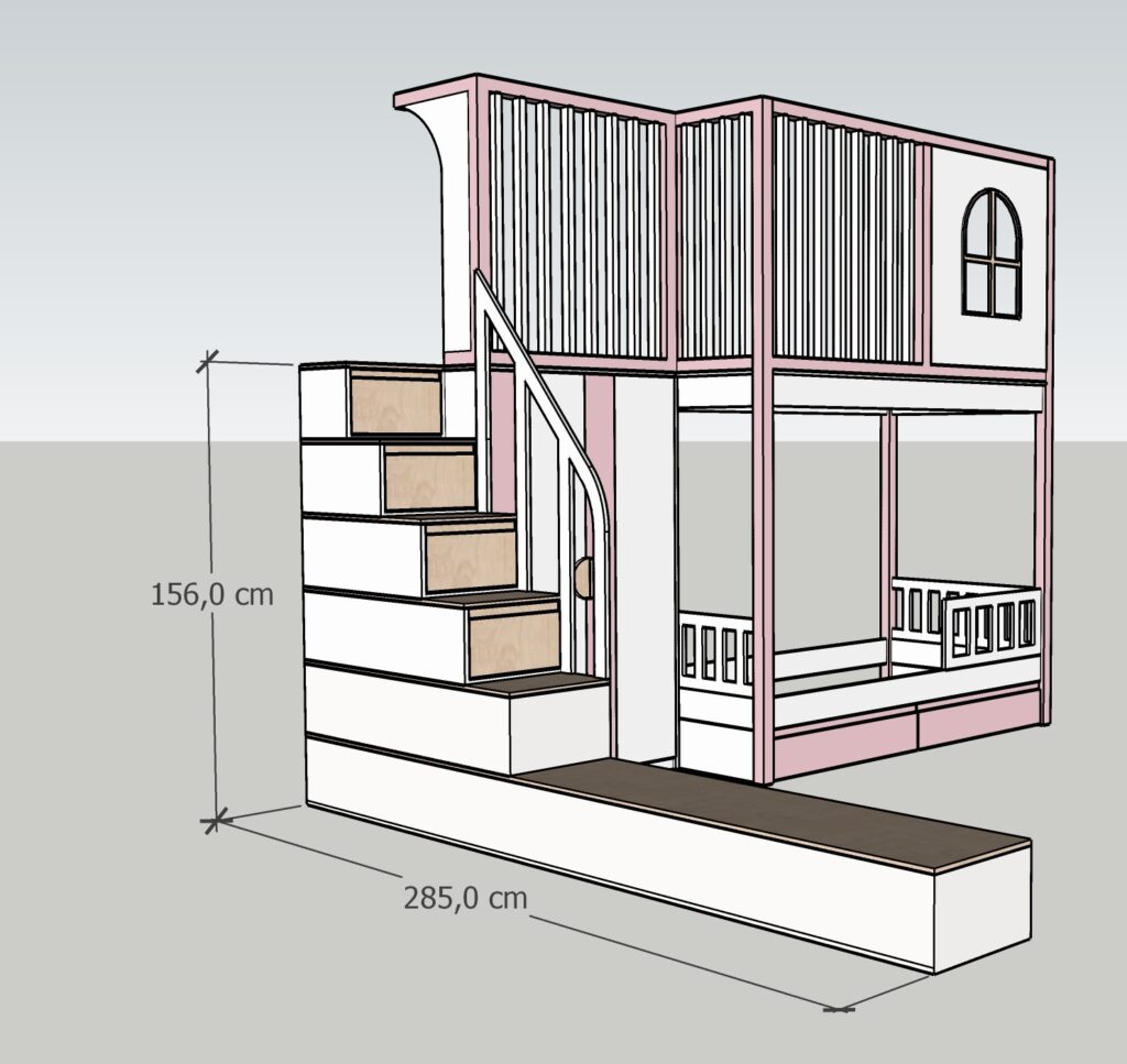 Dzisiaj chcemy Was zaprosić do dziewczęcego pokoju, w którym króluje róż i już 🙂 Wyzwaniem było zaprojektowanie i wykonanie zabudowy z bezpiecznym wejściem na górną część do zabawy, a na dole miejsce do spania. Zawsze przy takich realizacjach, gdy działamy na odległość jest lekki stres czy wszystko będzie pasować. Pasowało idealnie. A jak to wyglądało krok po kroku.