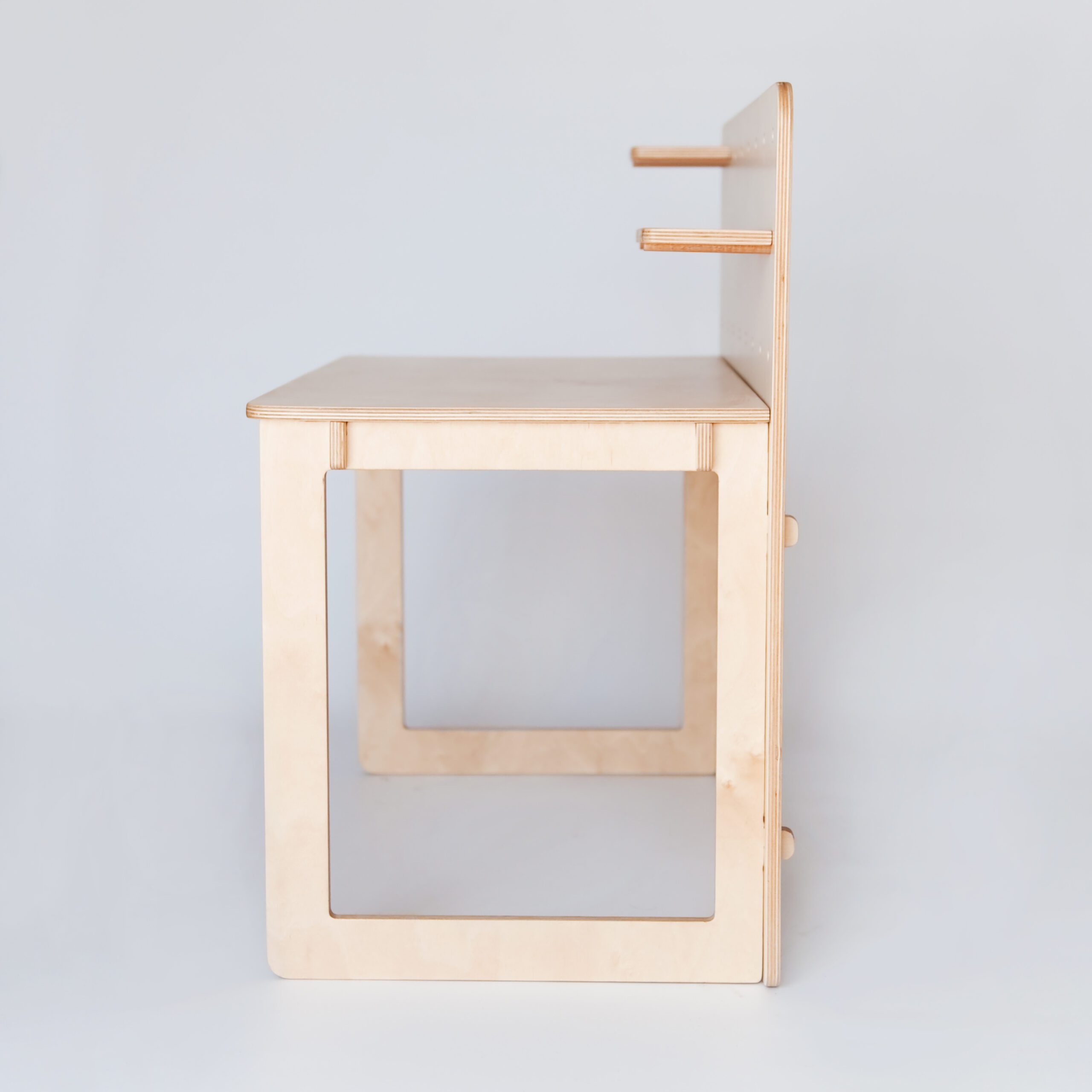 Nie tylko osobista przestrzeń do pracy jest istotnym elementem na ścieżce rozwoju dzieci. Ważna jest też odpowiednia organizacja miejsca pracy i odpowiednie rozlokowanie rzeczy. Dzięki funkcjonalnemu biurku, które zawiera dwie dodatkowe półki. Tworzenie mebli z wykorzystaniem technik Montessori pozwalają nie tylko uzyskać prywatną przestrzeń pracy dziecka, ale też umożliwią mu zdrowy rozwój, dzięki możliwości samodzielnego rozporządzania swoją własną przestrzenią. Biurko te jest wykonane w prostym, uniwersalnym stylu, łatwym do samodzielnej stylizacji. Konstrukcja jest stabilna i całkowicie bezpieczna do użytku. Elefanty tworzą meble z myślą o dobru Twojego dziecka! Choć stolik stworzony został z lekkich i miękkich materiałów, nie chwieje się, przez co nie ma ryzyka przewrócenia się.