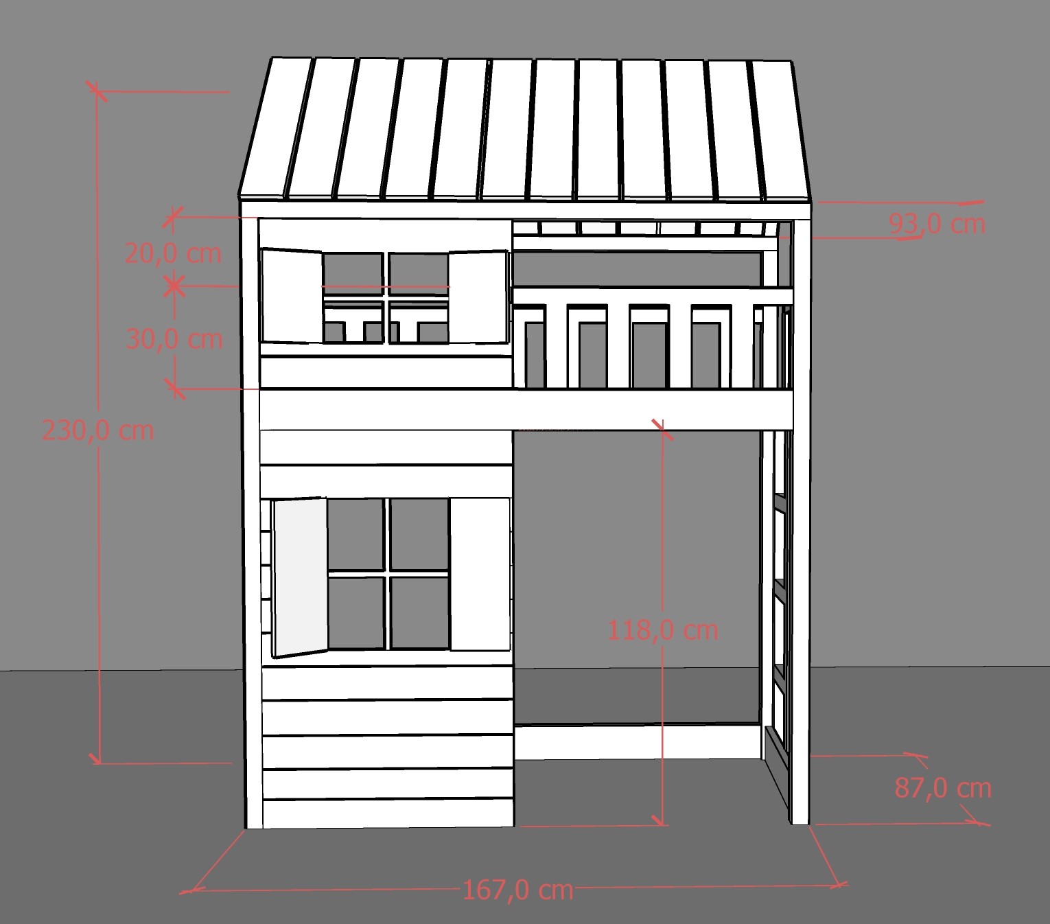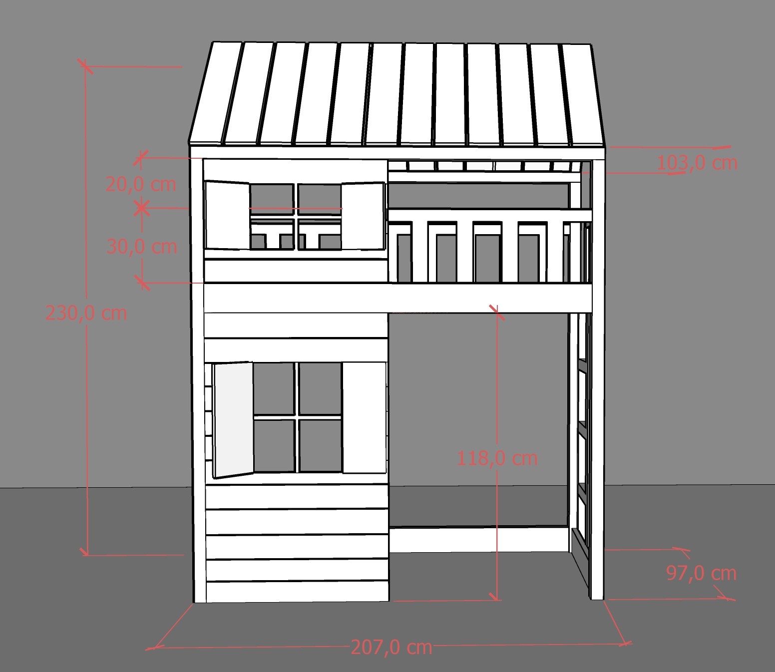 Model 101A1 posiada dwa okienka z okiennicami i doniczkami, które tworzą przytulną atmosferę w pokoju i pozwalają na poczucie intymności i bezpieczeństwa podczas snu.