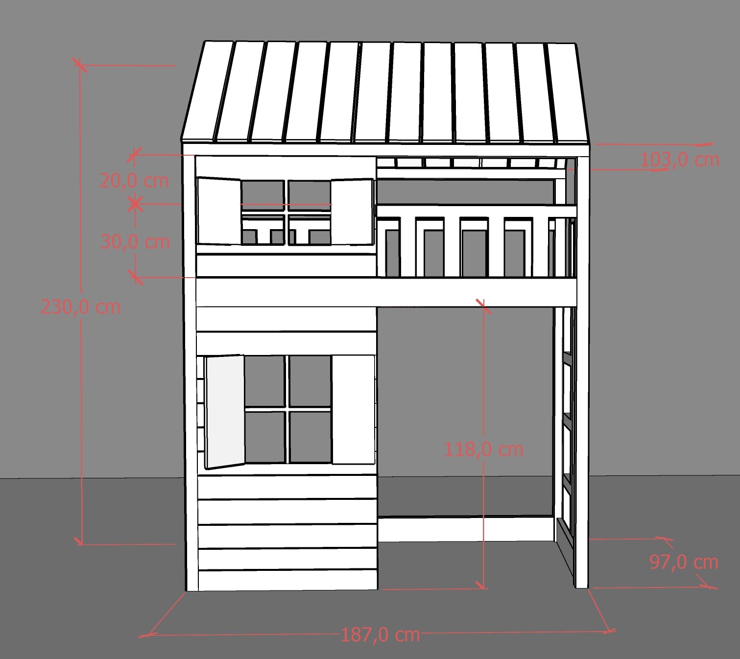 Otrzymasz antresolę zawierające wszystkie elementy ze zdjęcia: