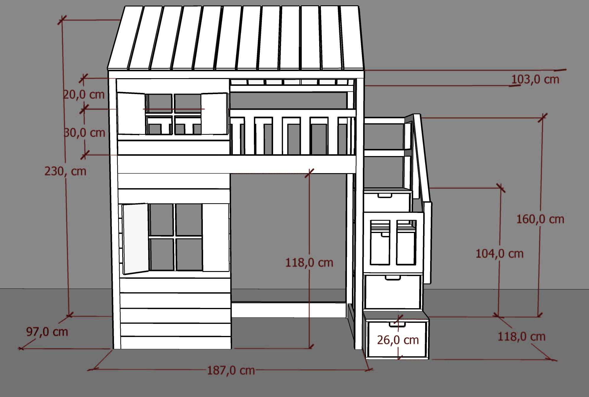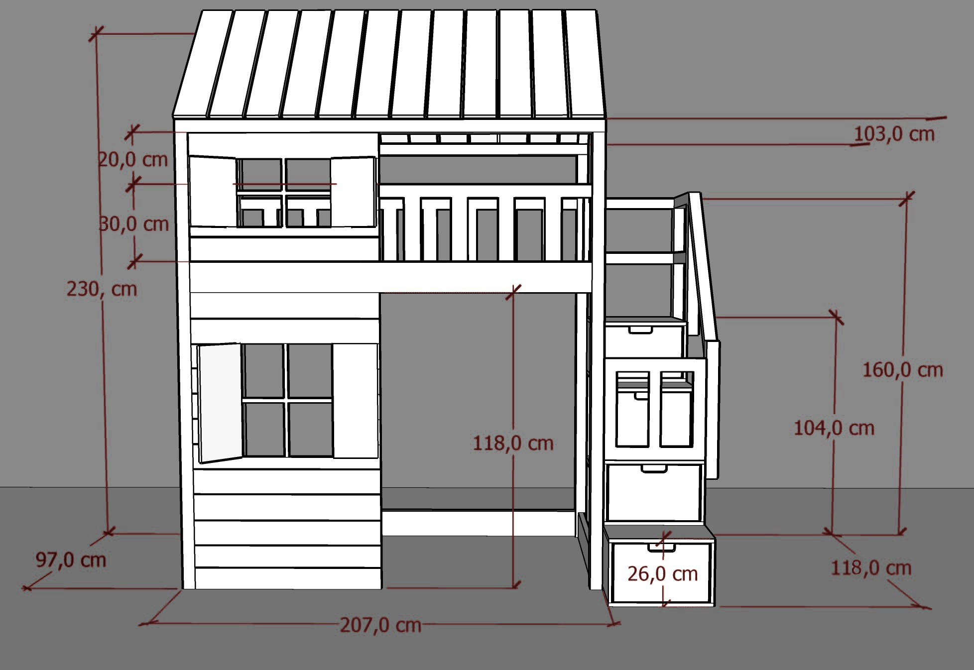 Model 101A posiada dwa okienka z okiennicami i doniczkami, które tworzą przytulną atmosferę w pokoju i pozwalają na poczucie intymności i bezpieczeństwa podczas snu.
