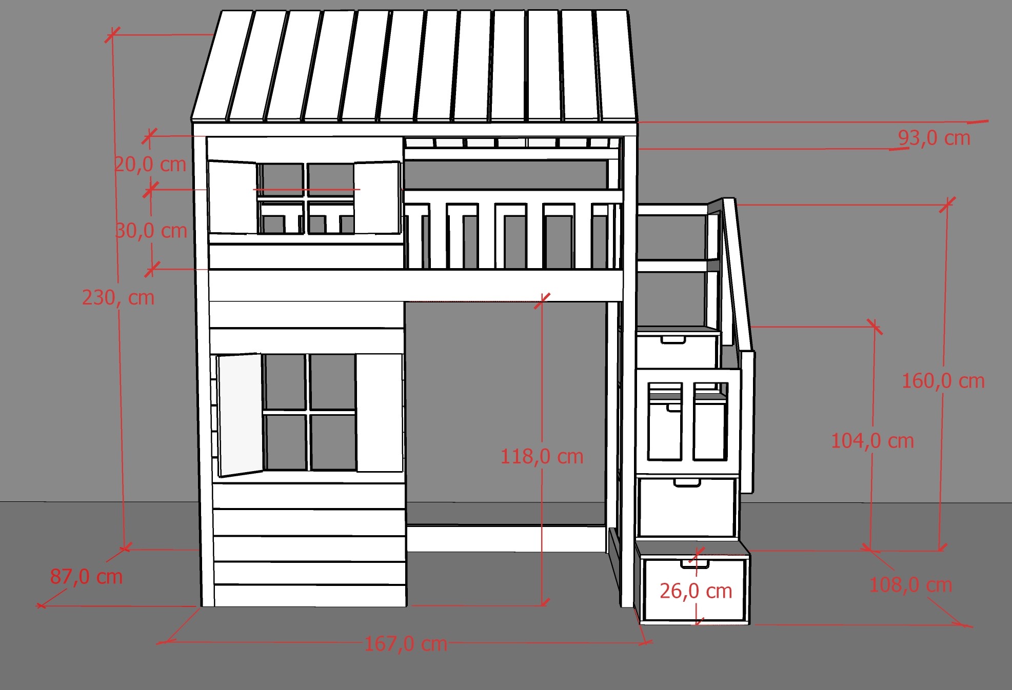 Otrzymasz antresolę zawierające wszystkie elementy ze zdjęcia: