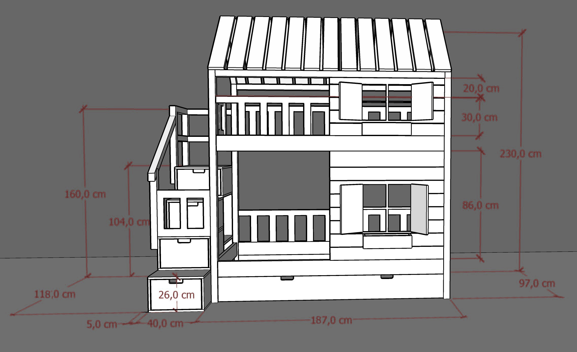 Model 101P posiada dwa okienka z okiennicami i doniczkami, które tworzą przytulną atmosferę w pokoju i pozwalają na poczucie intymności i bezpieczeństwa podczas snu.