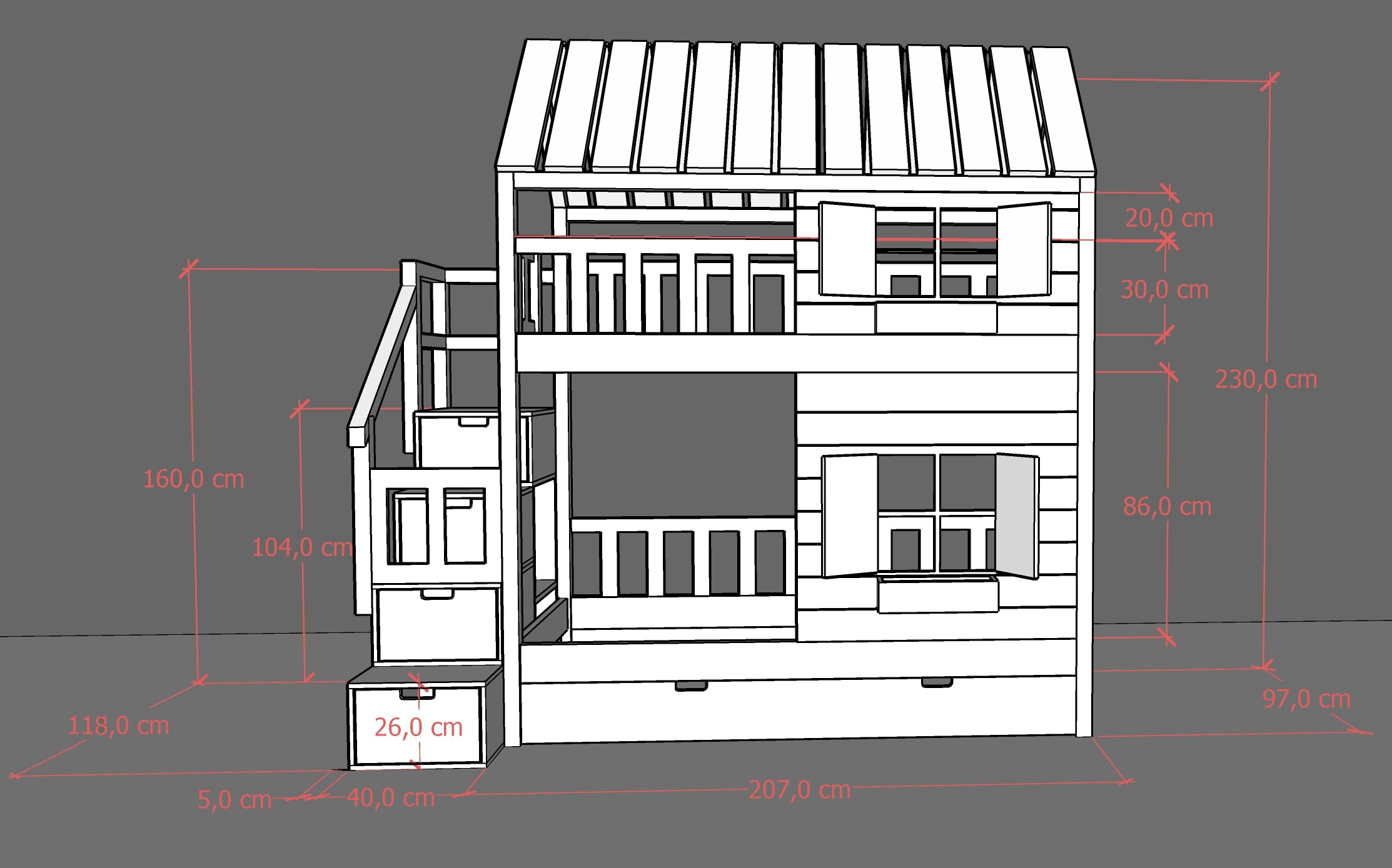 Możemy wprowadzić na Twoje życzenie praktycznie każdą modyfikację tego łóżka. Inne kolory, wymiary, układ? Dopasujemy indywidualnie łóżko do dostępnej przestrzeni.