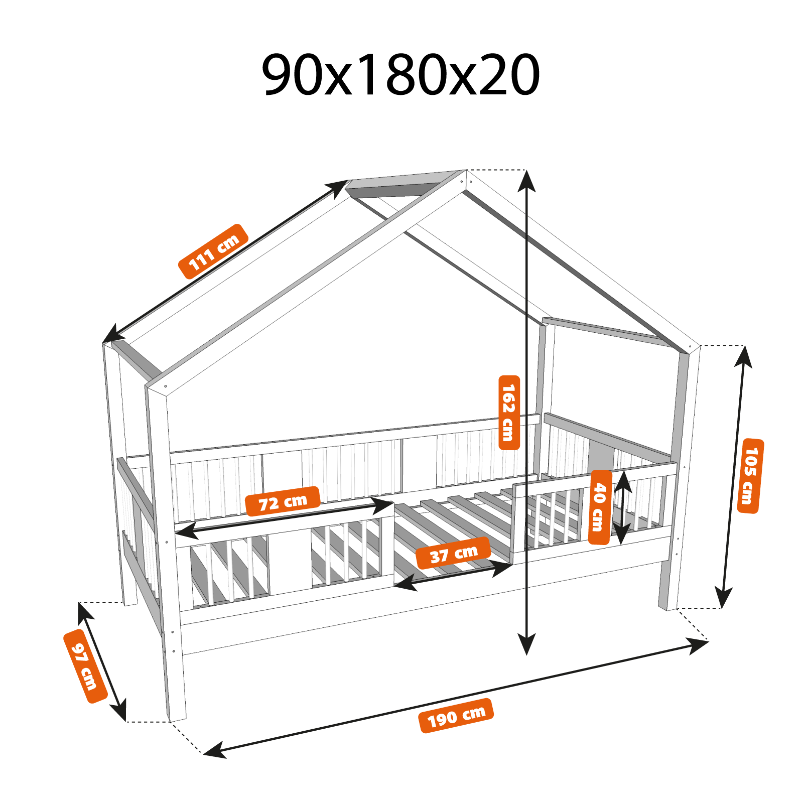 Konstrukcja łóżka domku wykonana została z klejonego drewna sosnowego, znanego ze swojej trwałości i estetycznego wyglądu. Jasny odcień drewna wnosi do pokoju dziecięcego ciepło i lekkość, idealnie wpisując się w naturalne aranżacje.