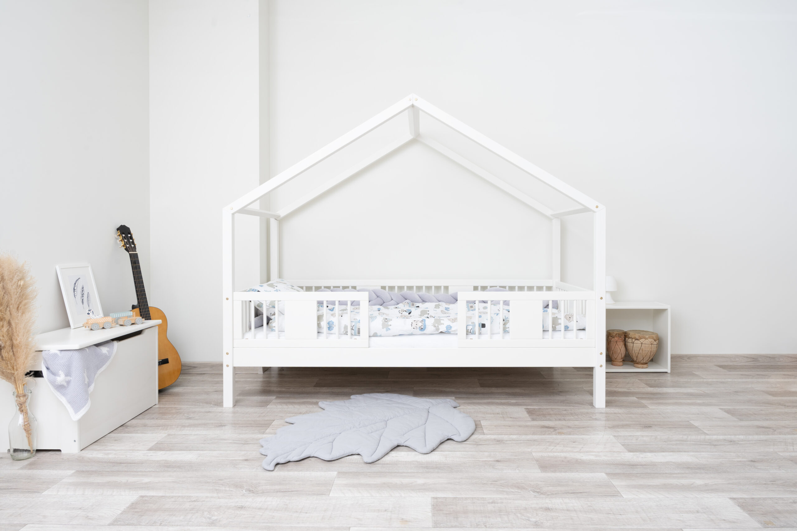 Wydłużony, drewniany daszek sprawia, że łóżko nabiera wyjątkowego, domkowego charakteru. Tworzy przytulną strefę, w której dziecko może nie tylko spokojnie zasypiać, ale również bawić się, odpoczywać i rozwijać wyobraźnię.