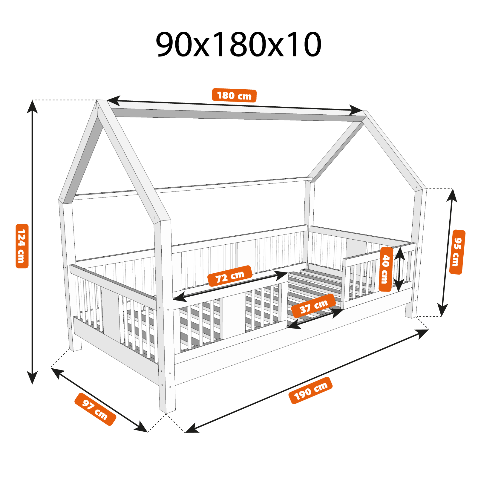 Konstrukcja łóżka domku wykonana została z klejonego drewna sosnowego, znanego ze swojej trwałości i estetycznego wyglądu. Jasny odcień drewna wnosi do pokoju dziecięcego ciepło i lekkość, idealnie wpisując się w naturalne aranżacje.
