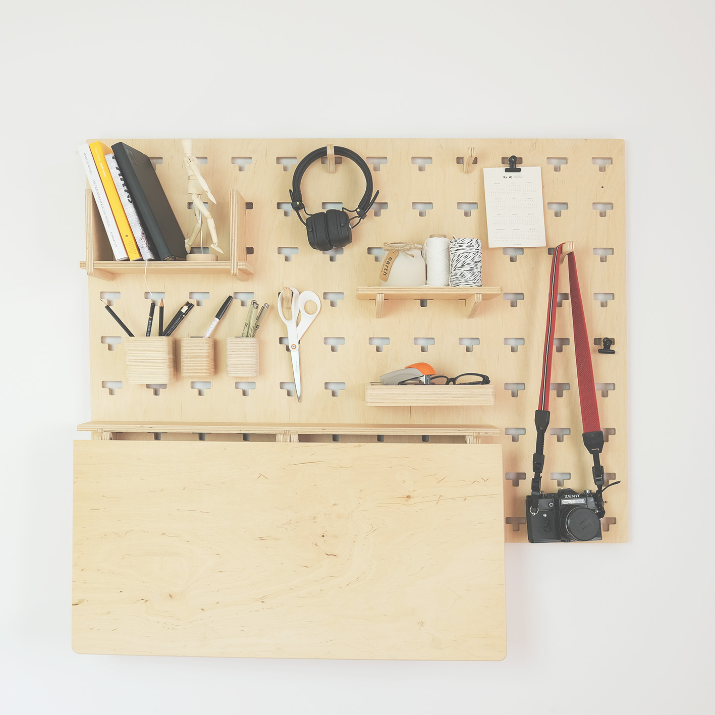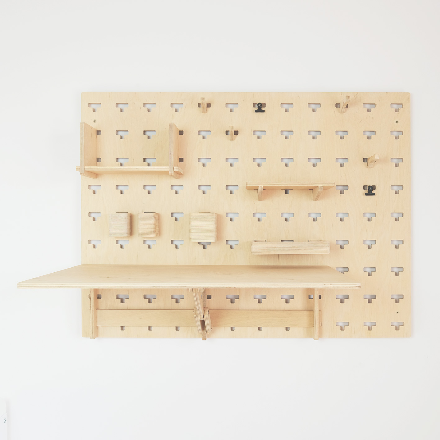Dobrze zaprojektowane meble zawsze dostosowują się do twoich potrzeb. Wszystkie elementy, w które wyposażyliśmy nasz pegboard są ruchome i pozwalają na tworzenie setek kreatywnych konfiguracji. Jeśli nie wystarcza ci skomponowany przez nas podstawowy zestaw akcesoriów, w każdej chwili możesz poszerzyć go o dodatkowe elementy, które znajdziesz w ofercie naszego sklepu. Jeden pegboard to za mało, by pomieścić wszystkie przedmioty, które chcesz mieć pod ręką? Dzięki specjalnemu systemowi łączników z kilku naszych tablic zamocowanych obok siebie w pionie lub poziomie stworzysz obszerny, zintegrowany organizer.