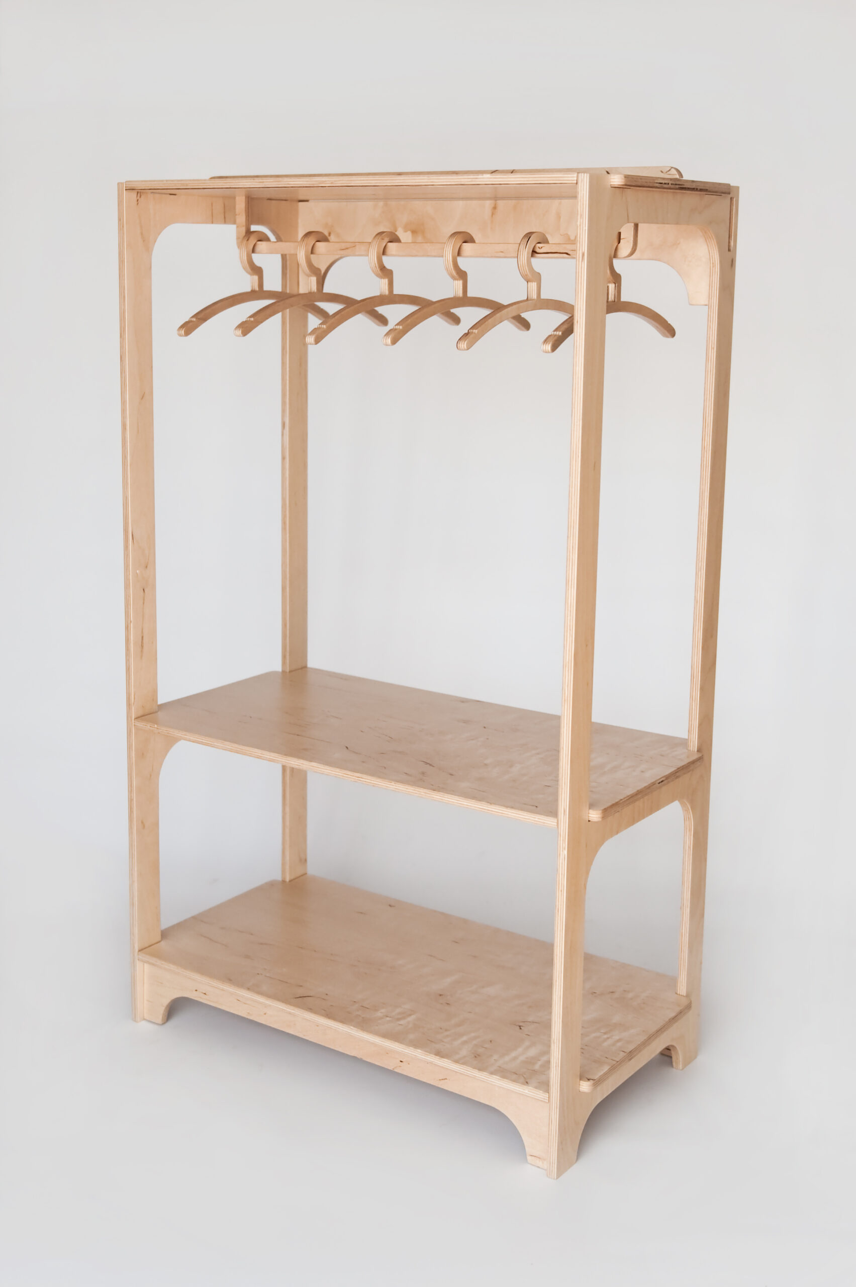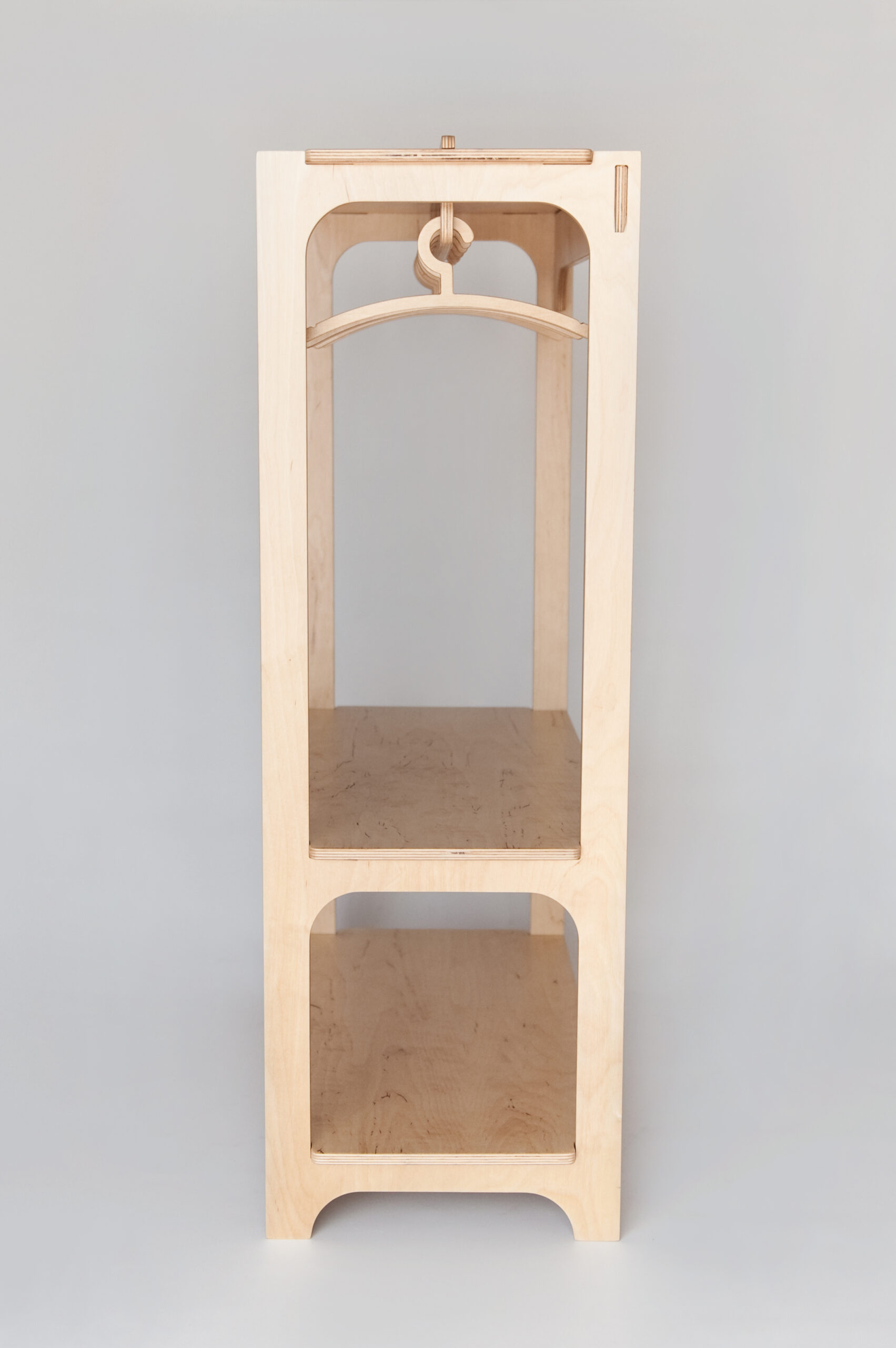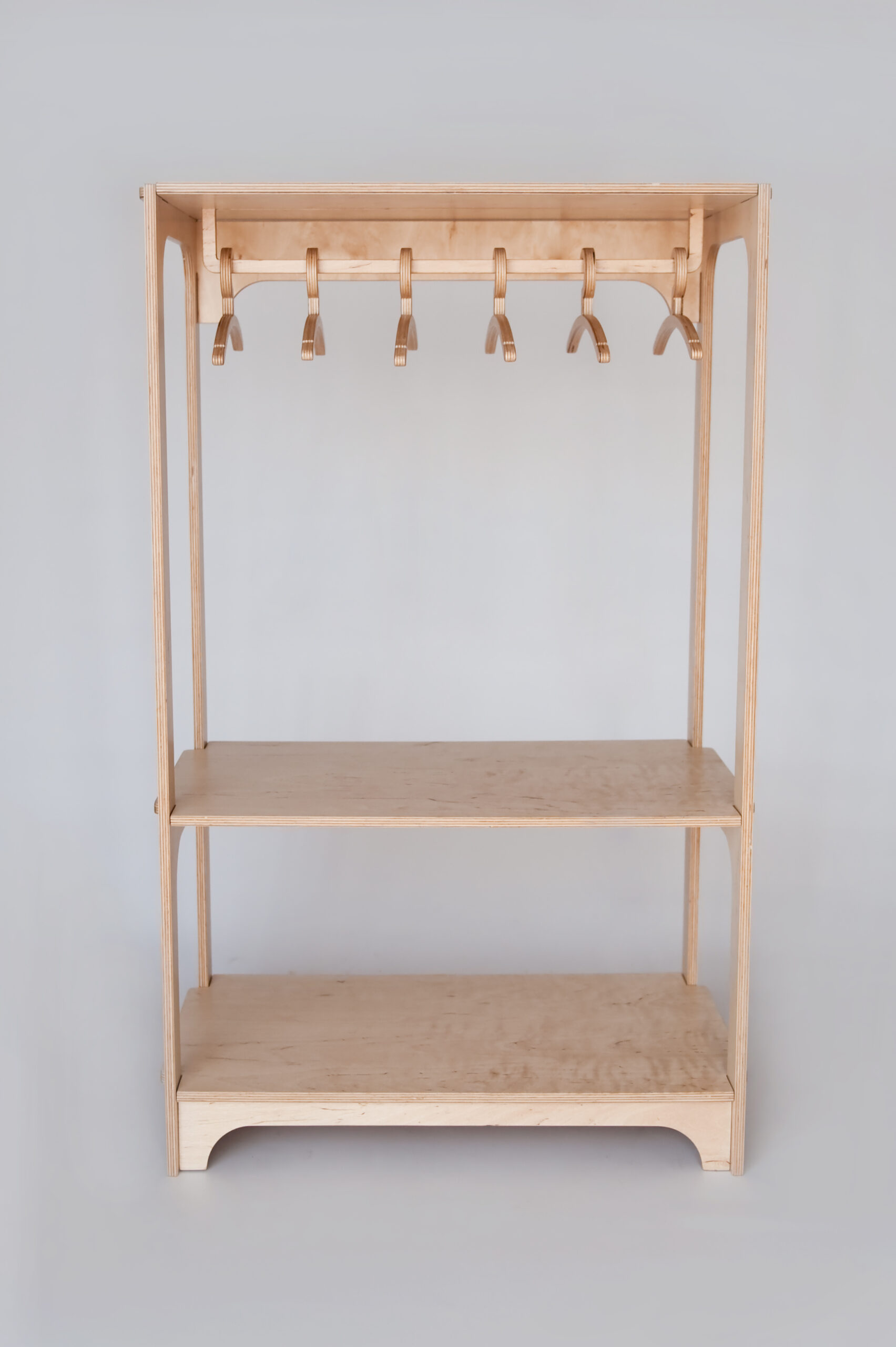 Otwarta garderoba dla dziecka to idealny sposób na uporządkowanie ubranek przez Twojego malucha. Dwie niskie półeczki oraz rząd wieszaków idealnie sprawdzą się przy segregowaniu i składaniu ubranek. Mebelki nie tylko mają prosty, uniwersalny design, ale także oferują sprawdzone techniki spełniające wymogi bezpieczeństwa oraz pomagające w zdrowym rozwoju dziecka zgodnie z metodą Montessori. Otwarta szafa pozwoli na sprawną naukę organizacji prywatnej sfery dziecka, a także rozwinie wyobraźnię przestrzenną, umiejętność segregowania rzeczy i zarządzania swoim czasem i przestrzenią. Porządna, nieruchoma konstrukcja z miękkiej sklejki liściastej jest dostosowana do wzrostu dziecka. Proces montażu otwartej szafy jest niezwykle prosty, dzięki czemu Twoje dziecko samo będzie mogło podołać temu zadaniu pod twoim czujnym okiem. Nowe miejsce do przechowywania ubrań to funkcjonalny mebel użytku codziennego, który posłuży Twojemu dziecko przez lata!