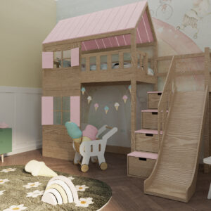 antresola domek ze zjeżdżalnią dla dziecka
