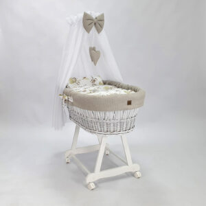 Kosz Mojżesza z baldachimem – biały pościel beżowa w bawełnę