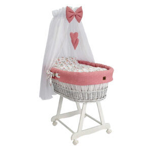 Kosz Mojżesza z baldachimem – biały pościel w listki