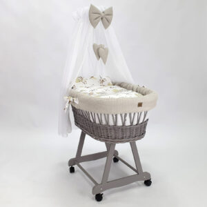 Kosz Mojżesza z baldachimem – szary pościel beżowa w bawełnę