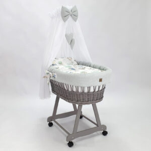 Kosz Mojżesza z baldachimem – szary pościel w listki